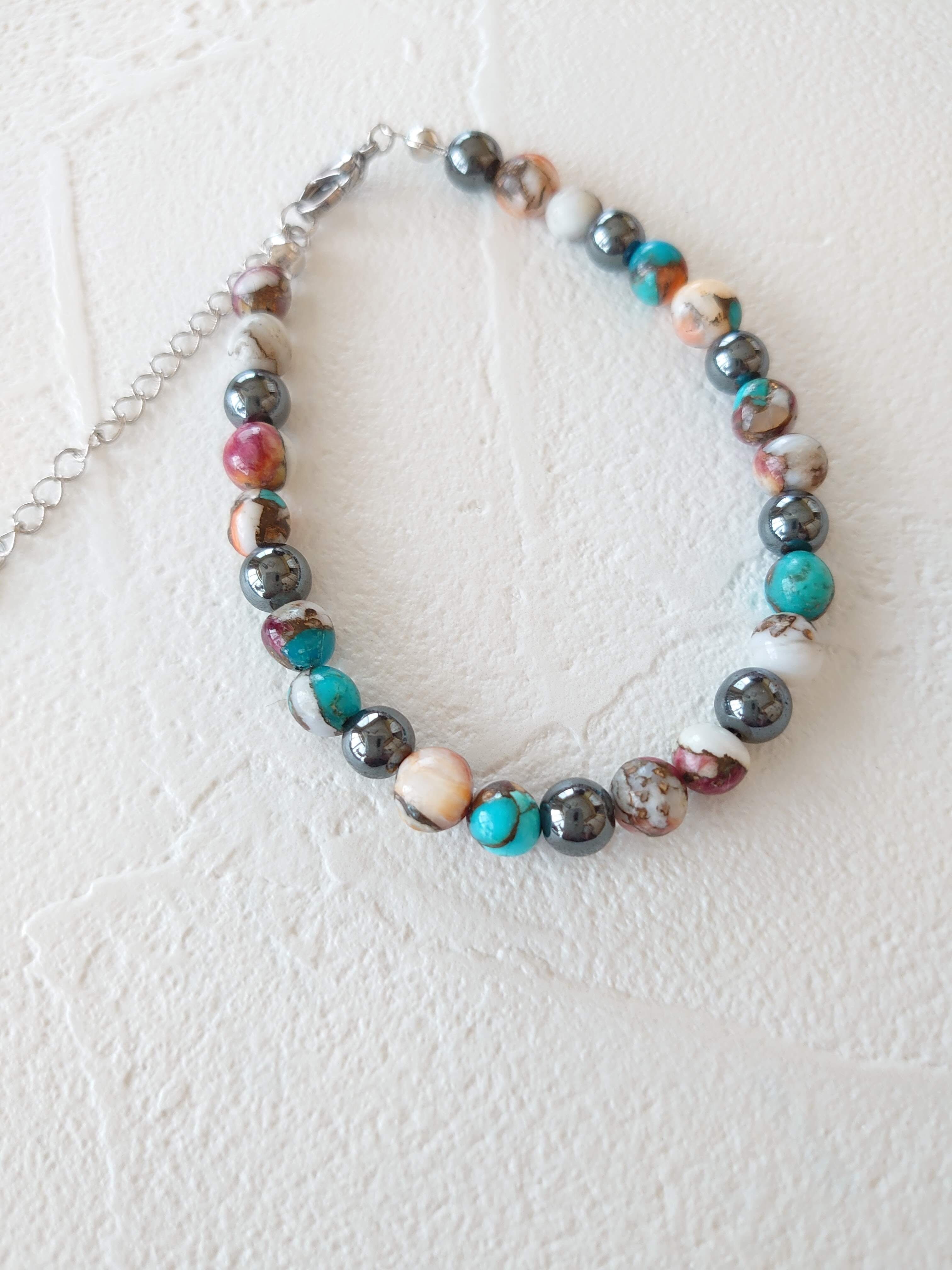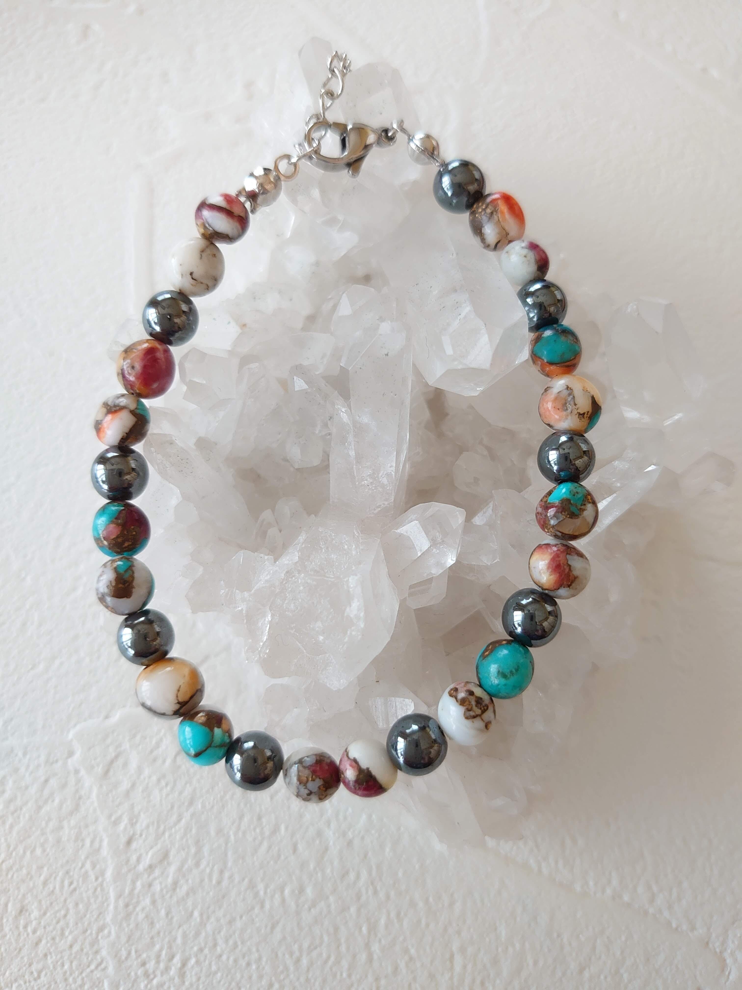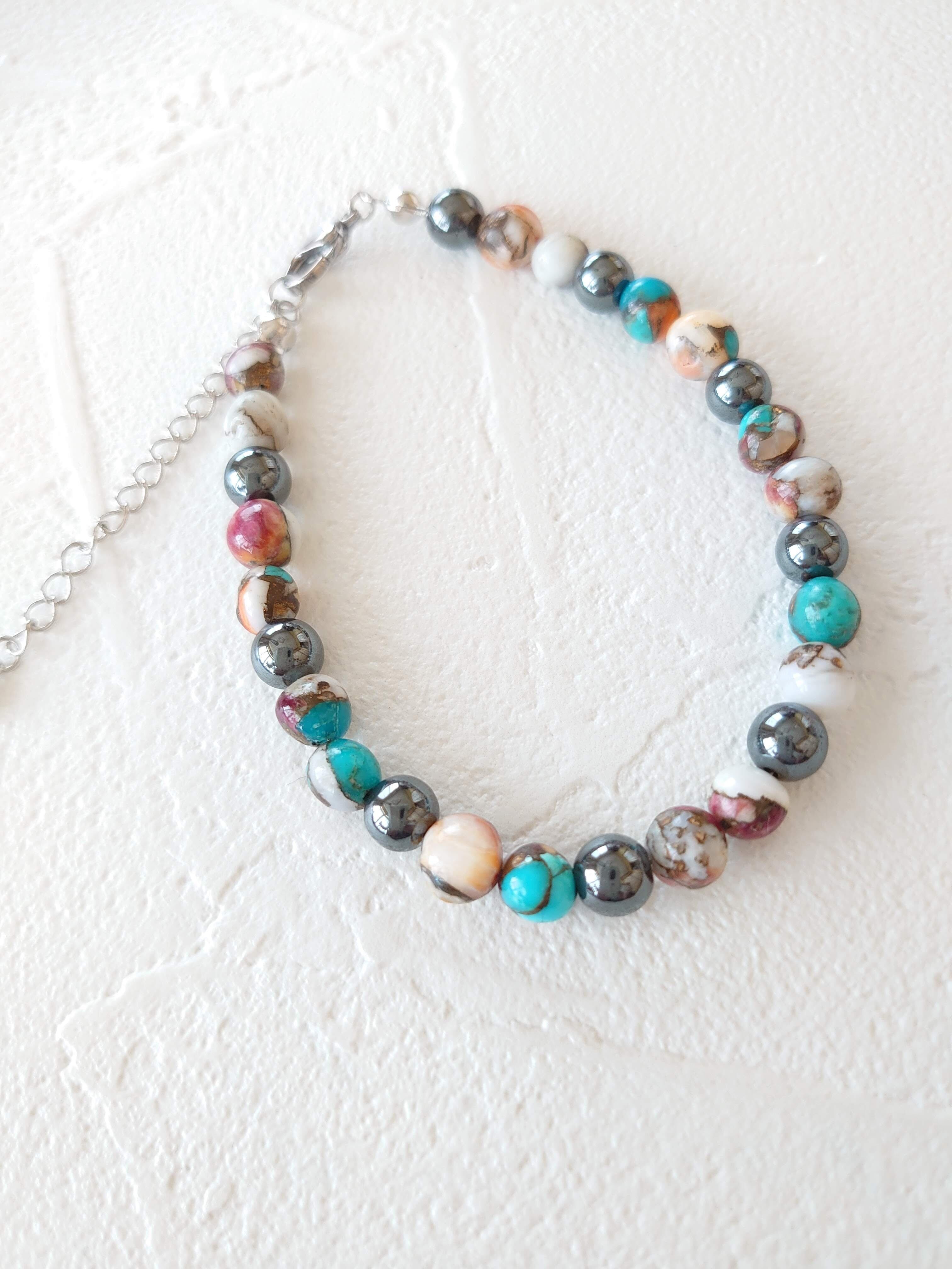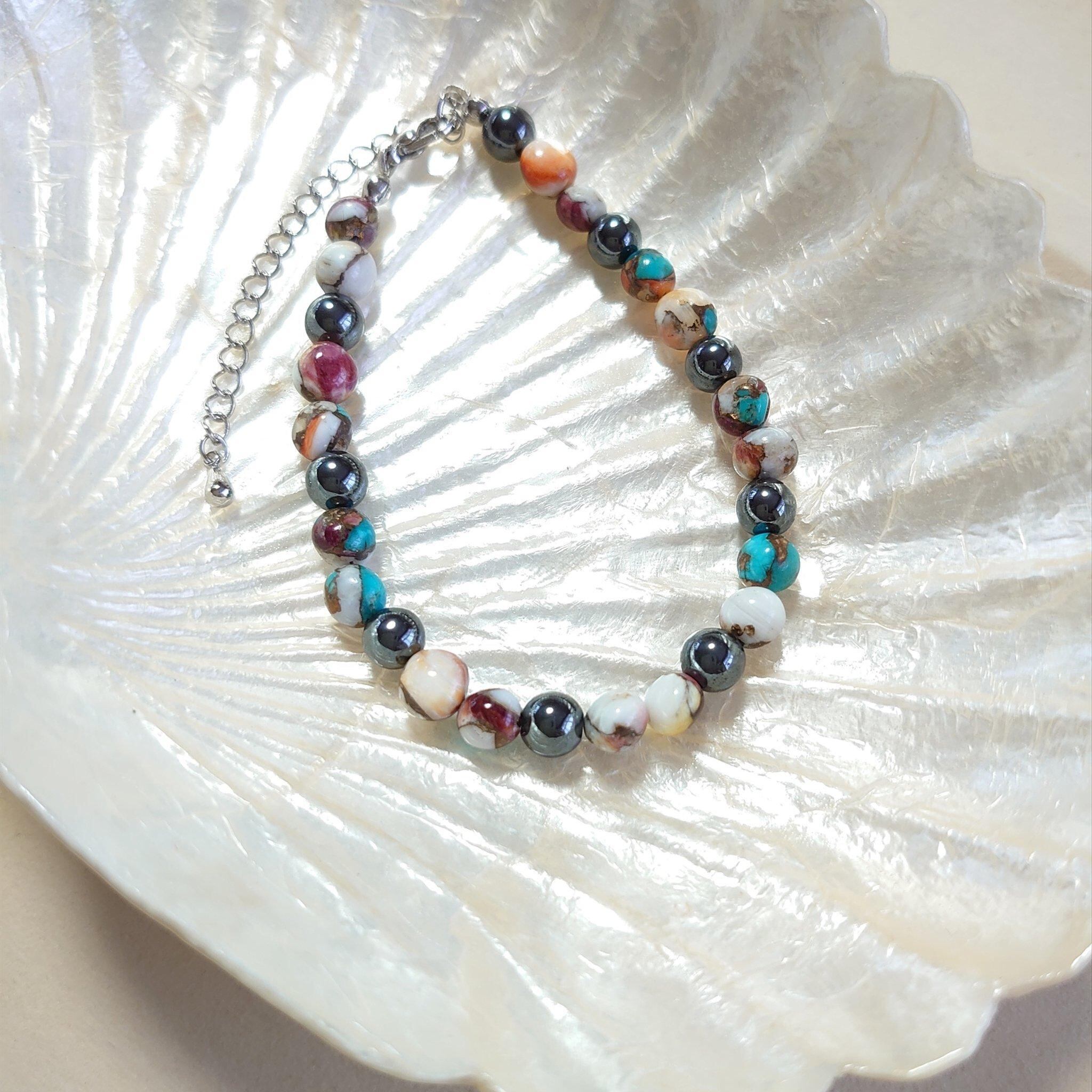 アメリカ合衆国アリゾナ州北西部キングマンで入手した「スパイニーオイスターシエル」を使ったブレスレットです。