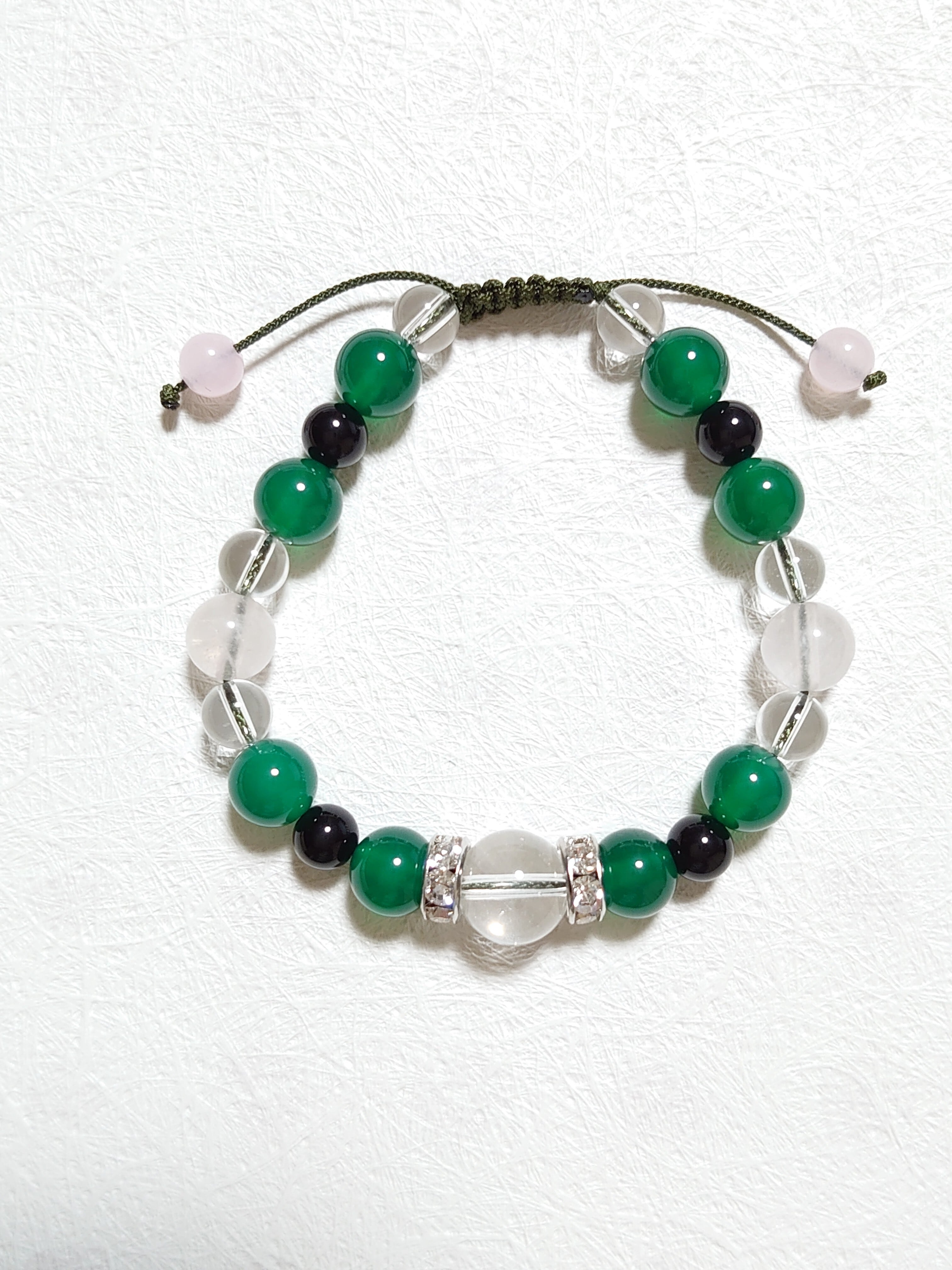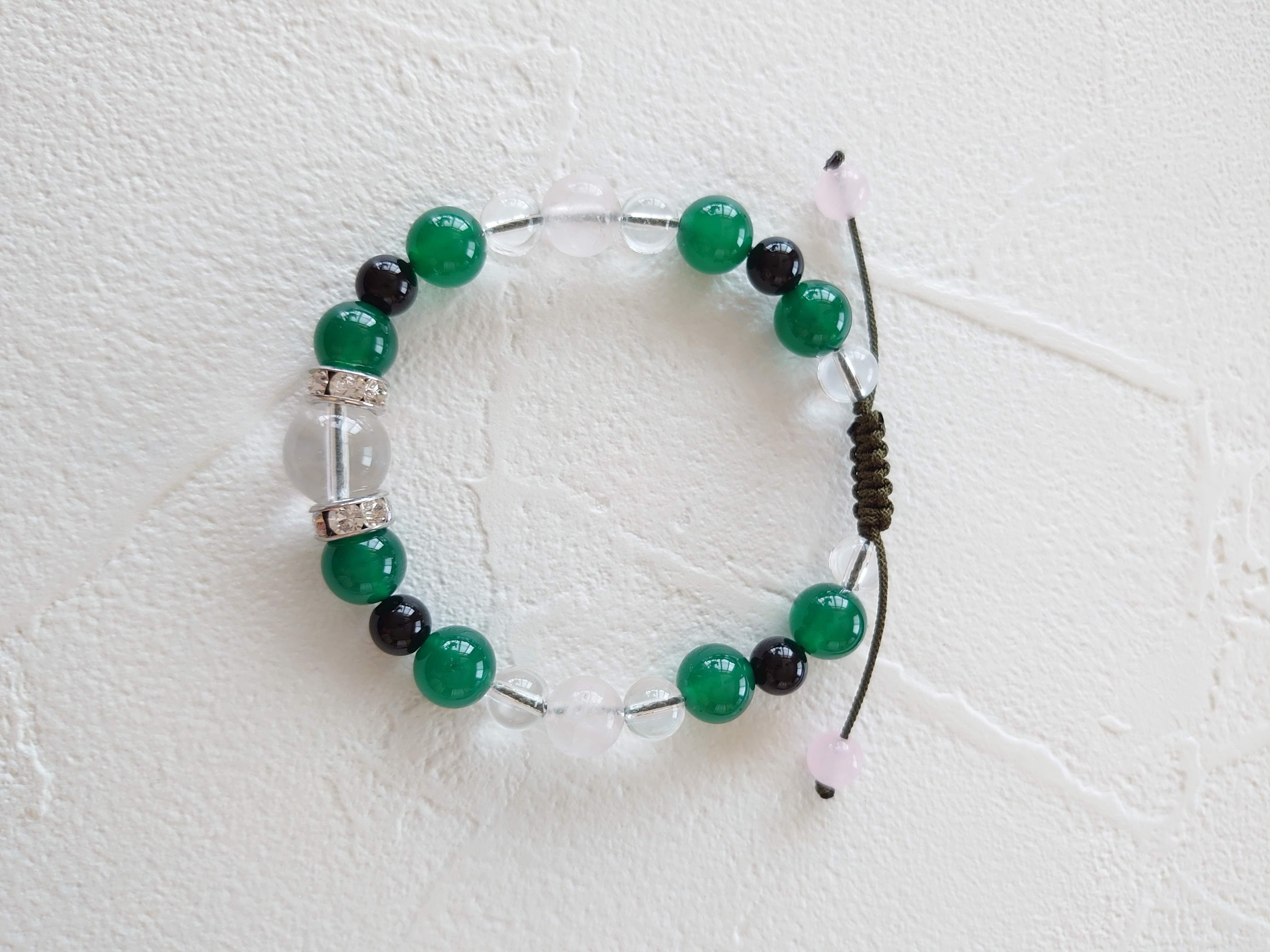 平結びブレスレット☆グリーンカルセドニー&オニキス~寛容・平和~