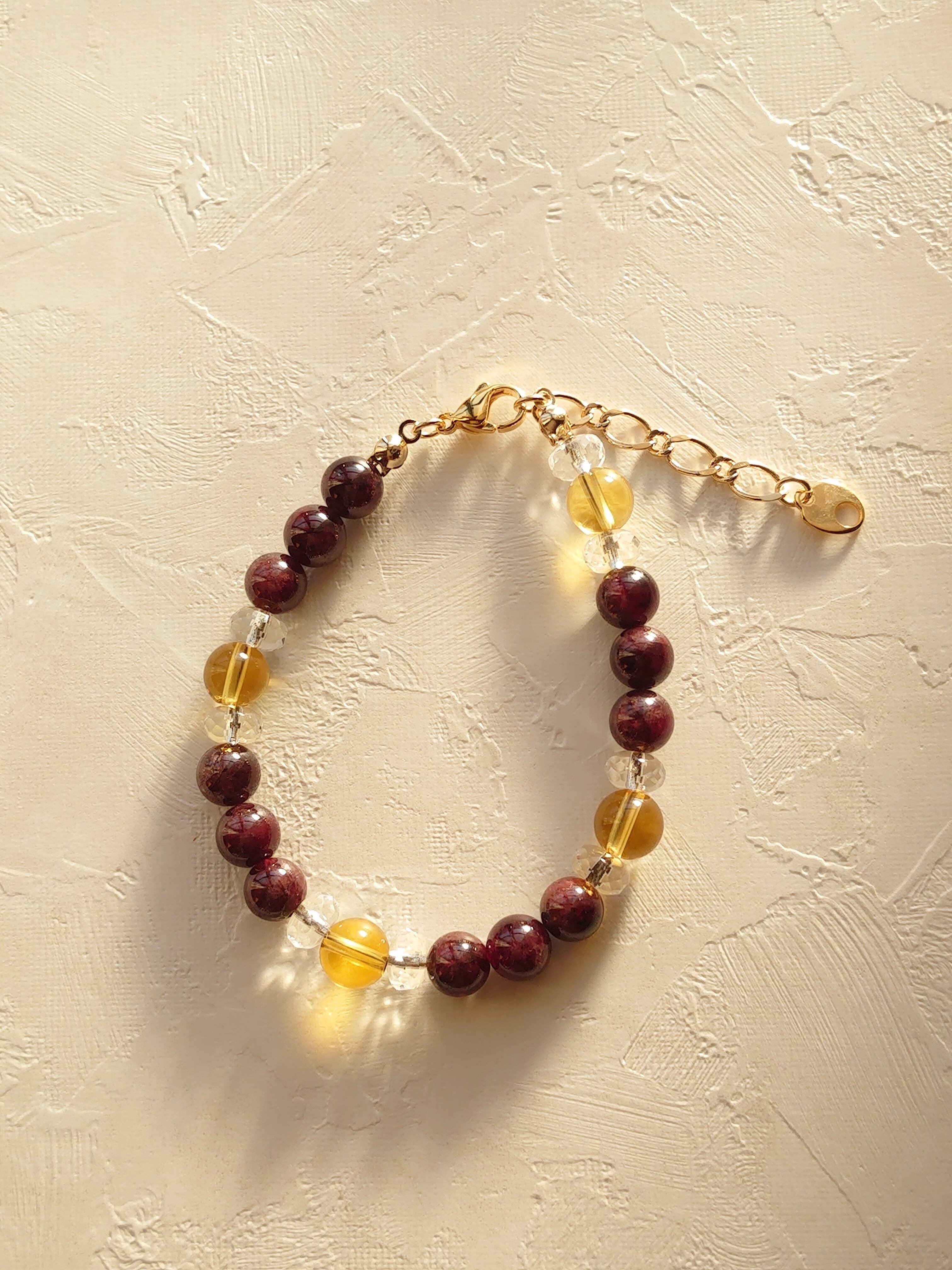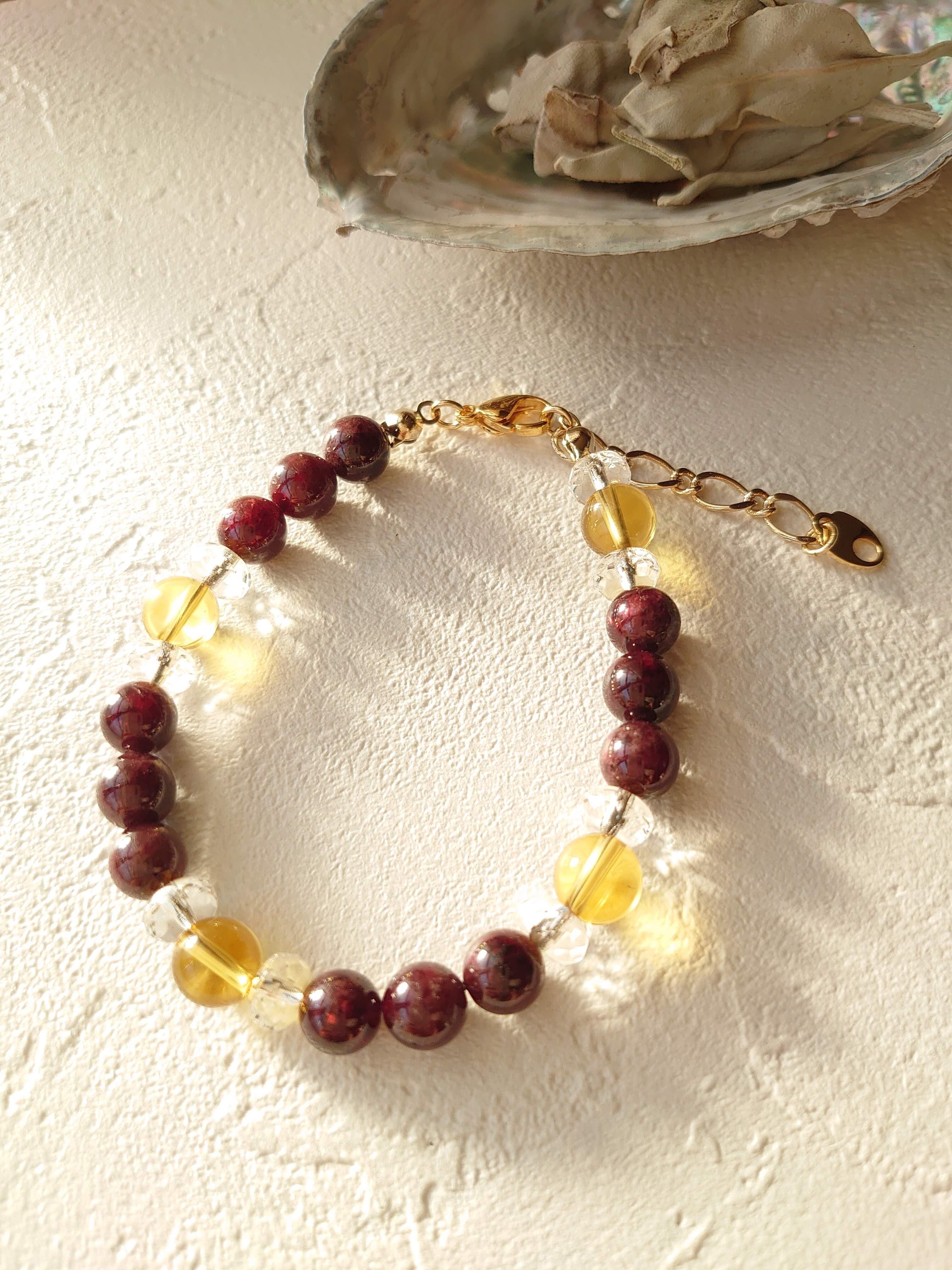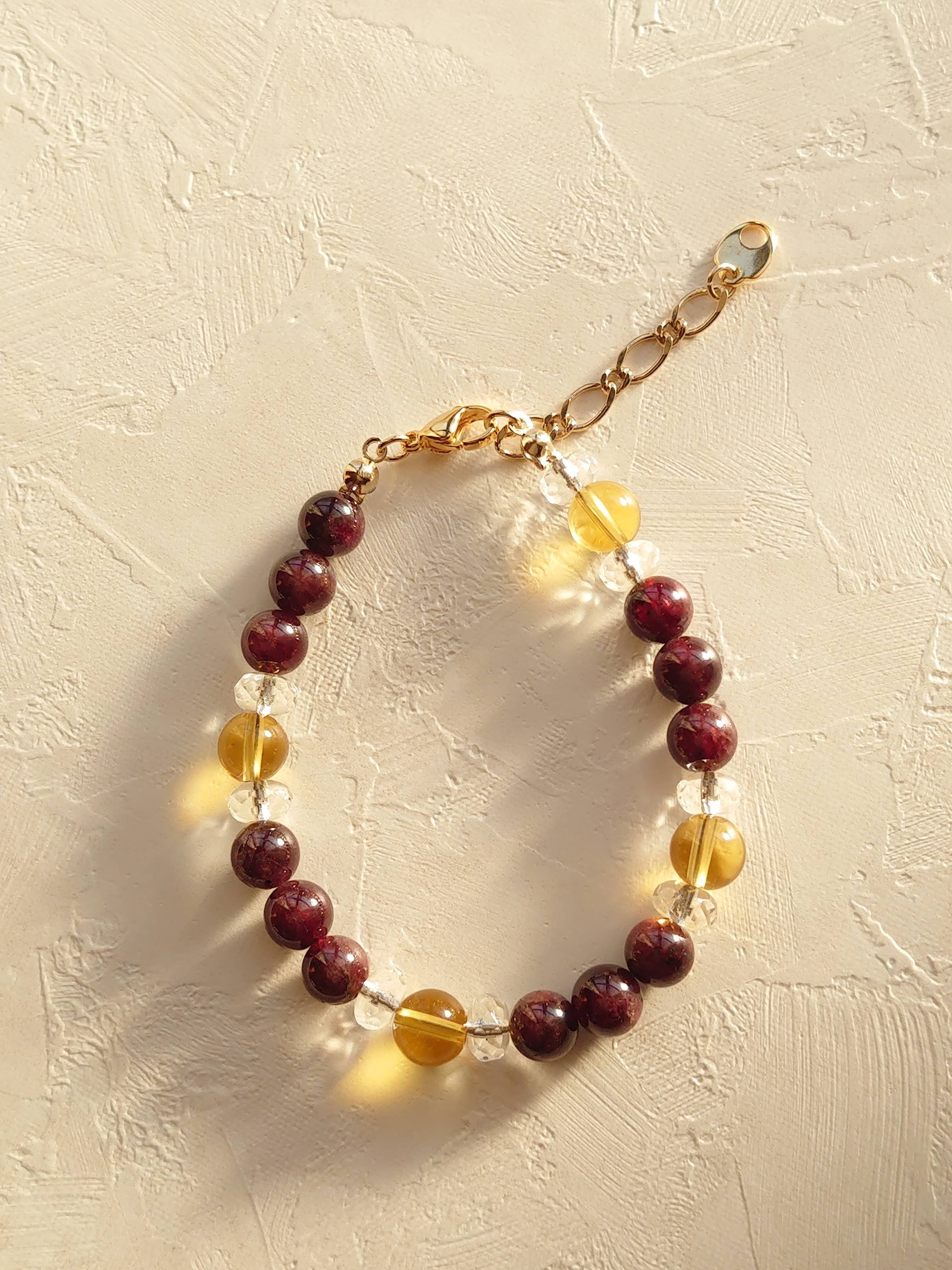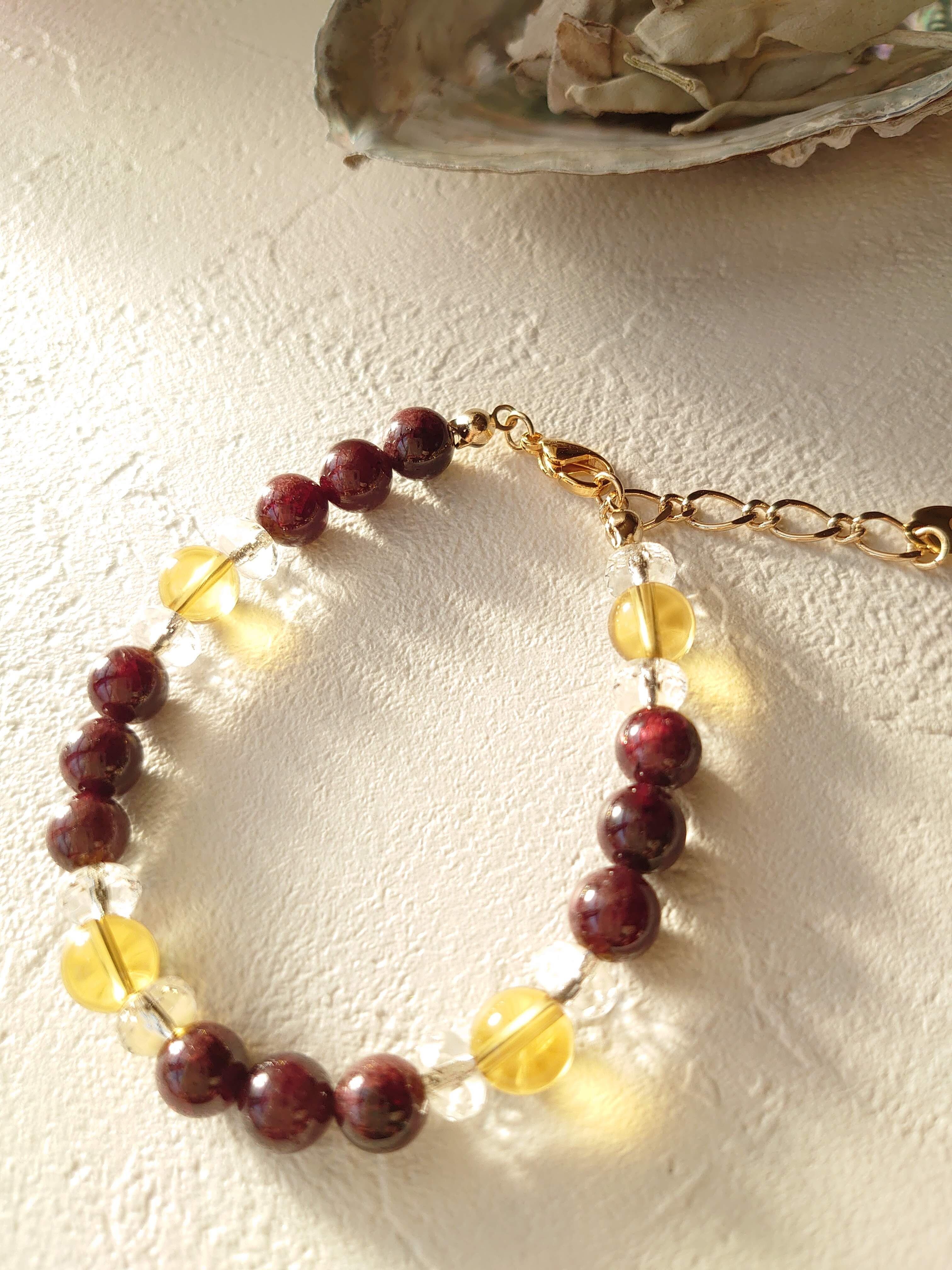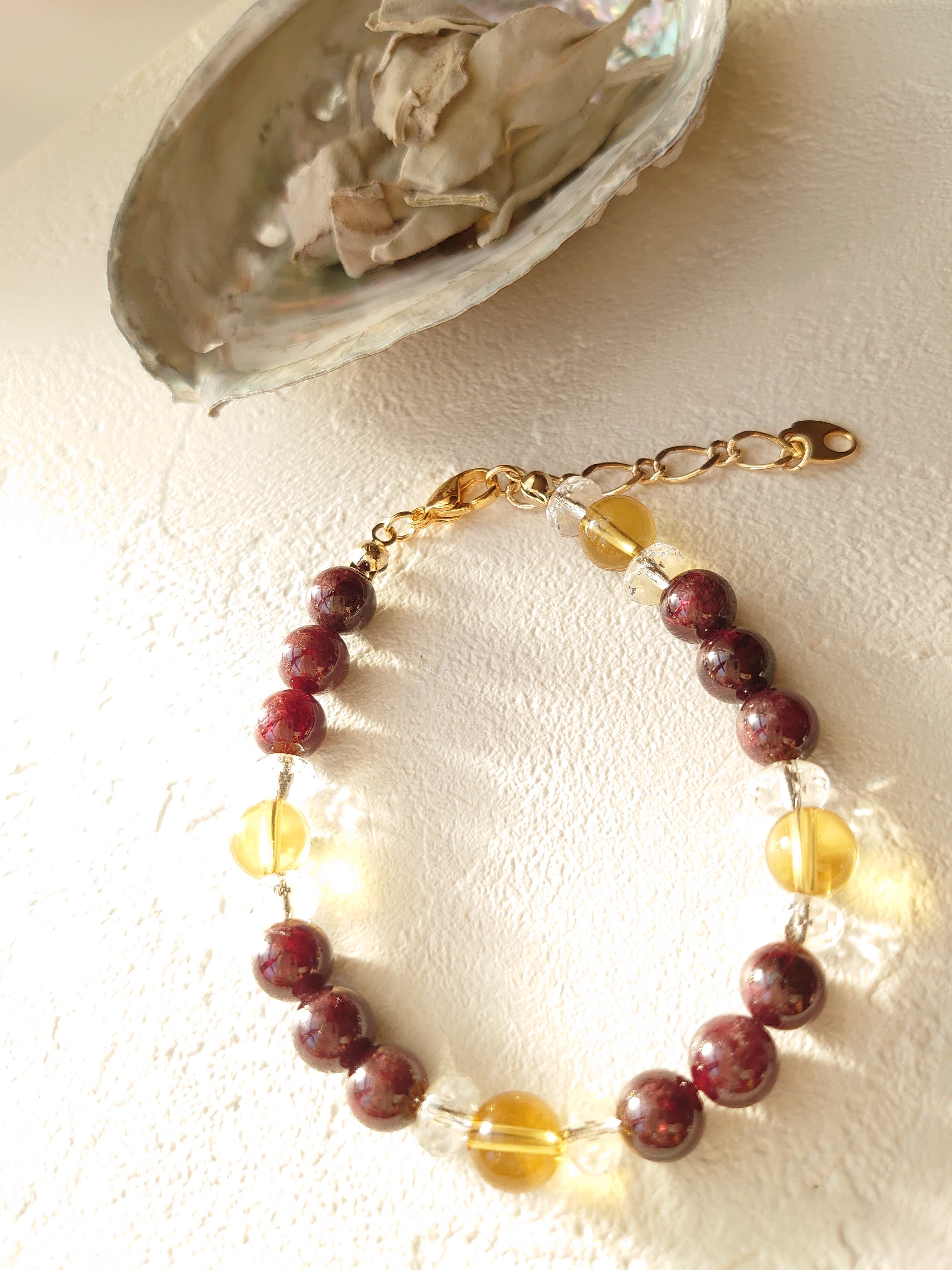 ガーネット(ラウンド)&シトリンブレスレット☆金運循環☆滞りを感じている方にお勧め!!