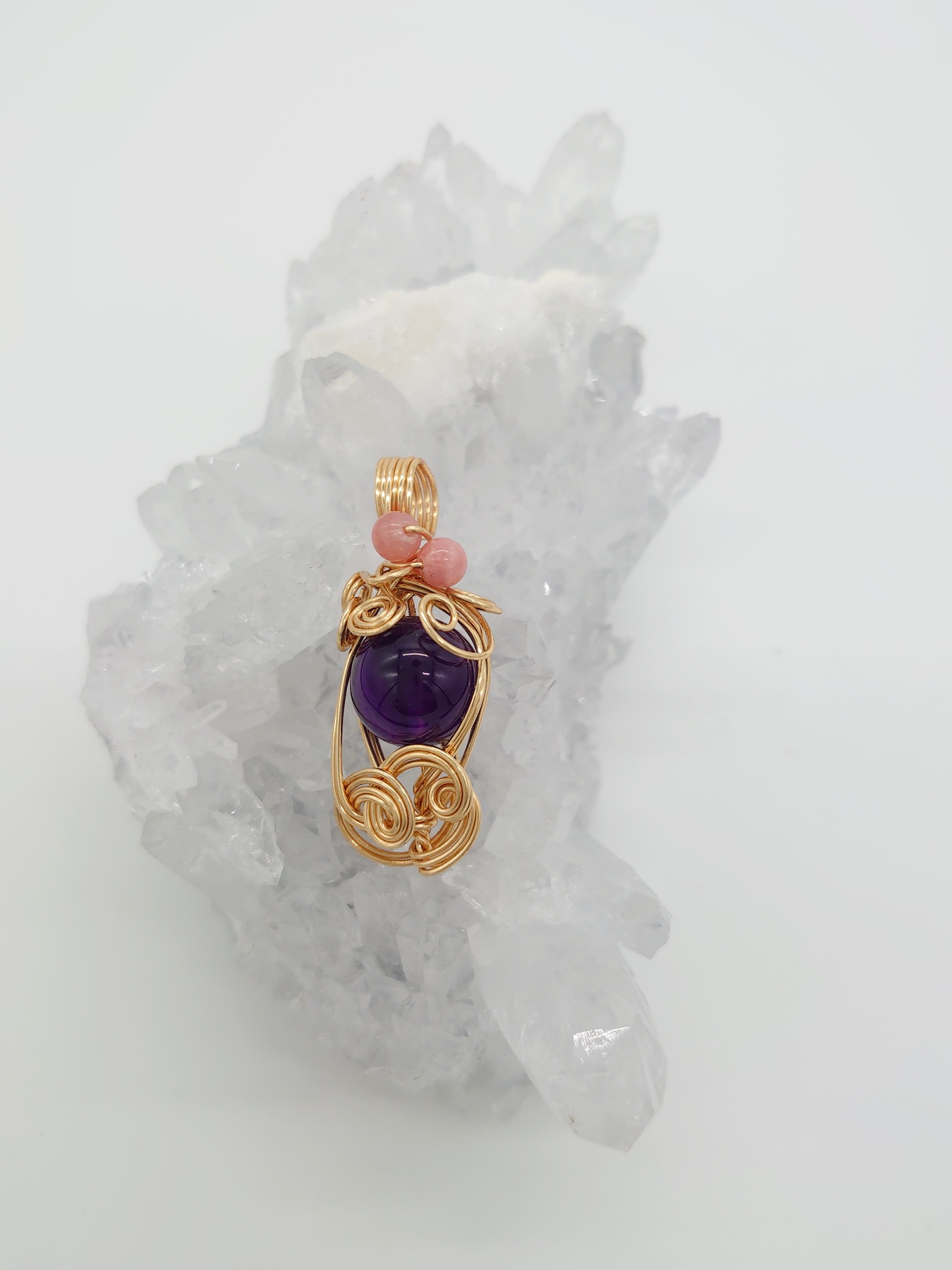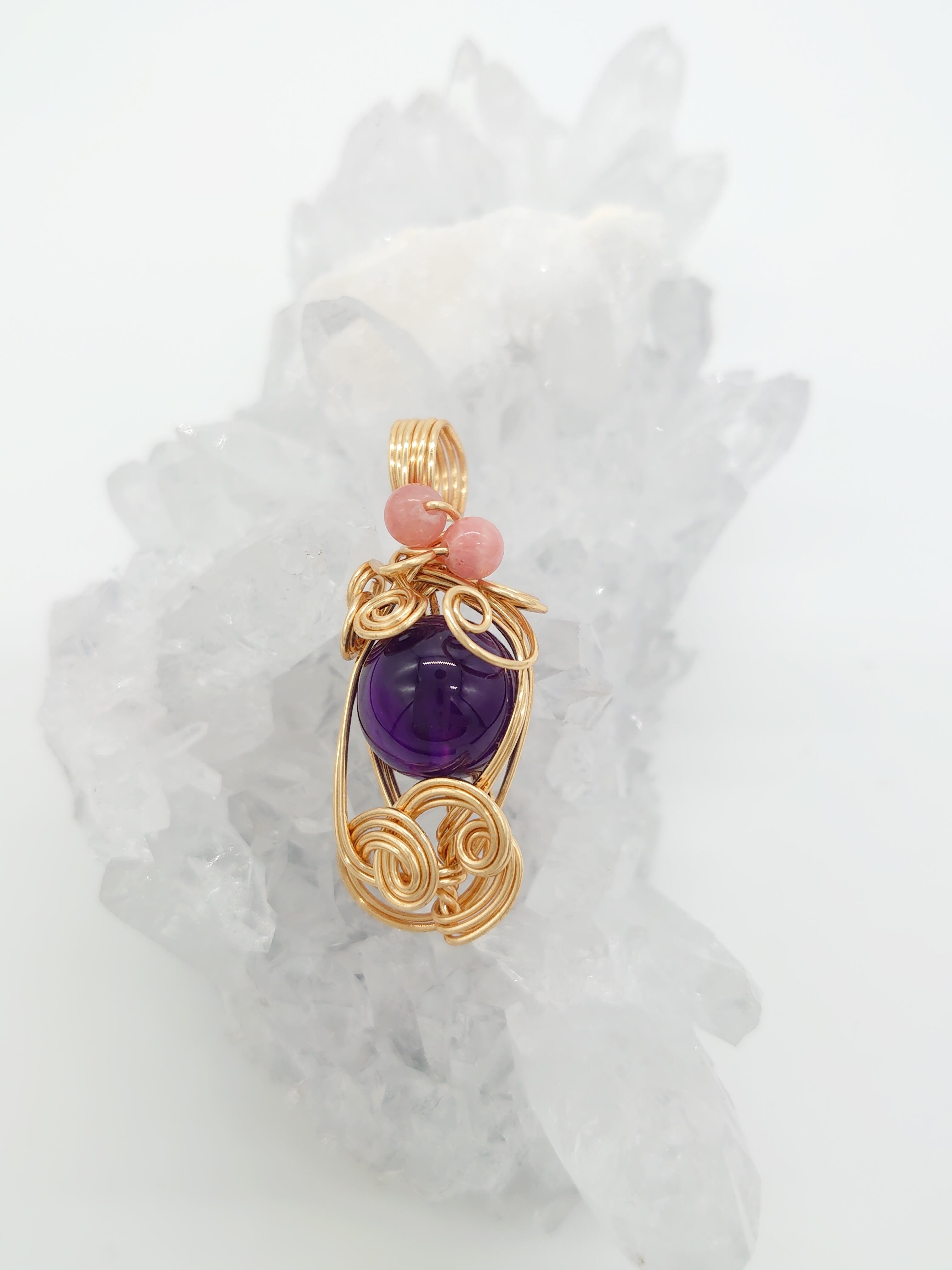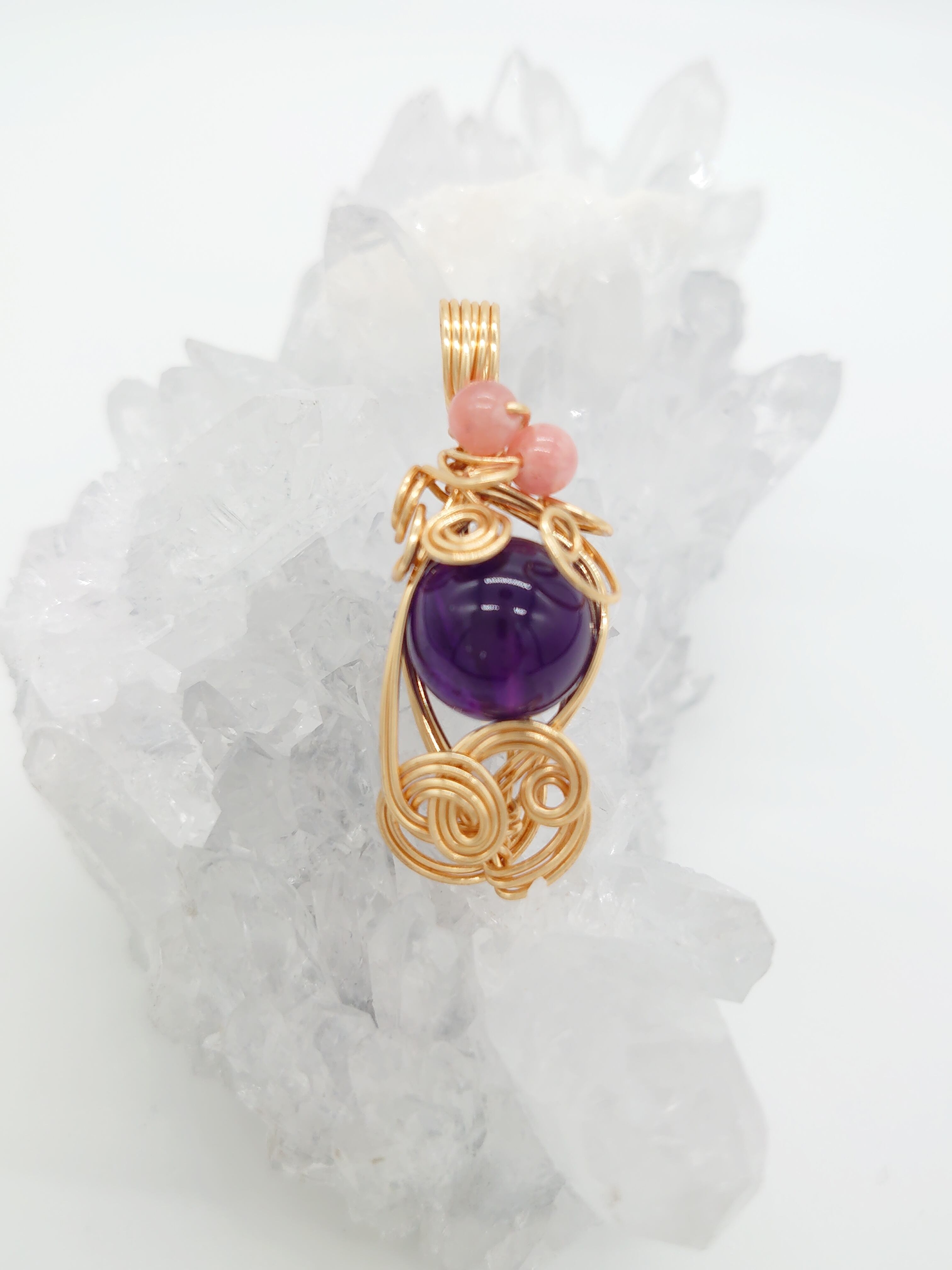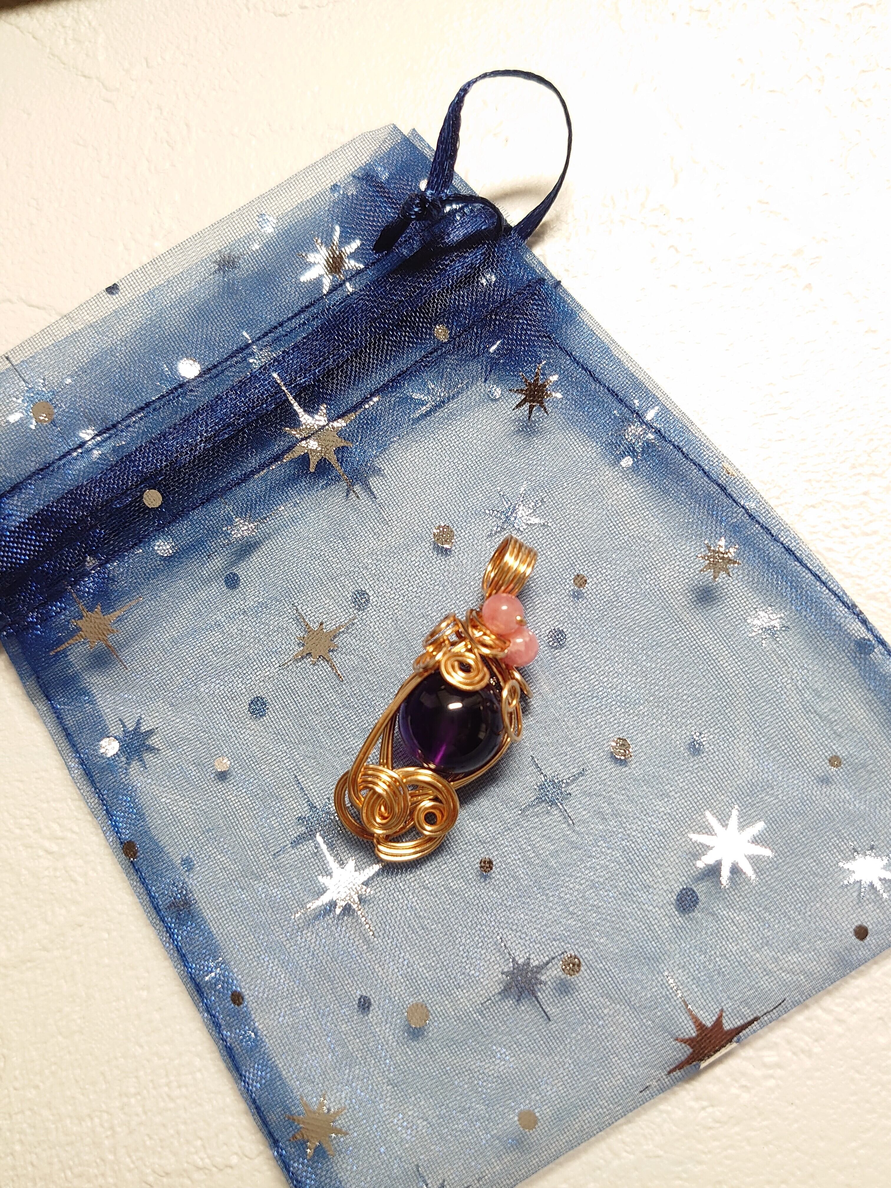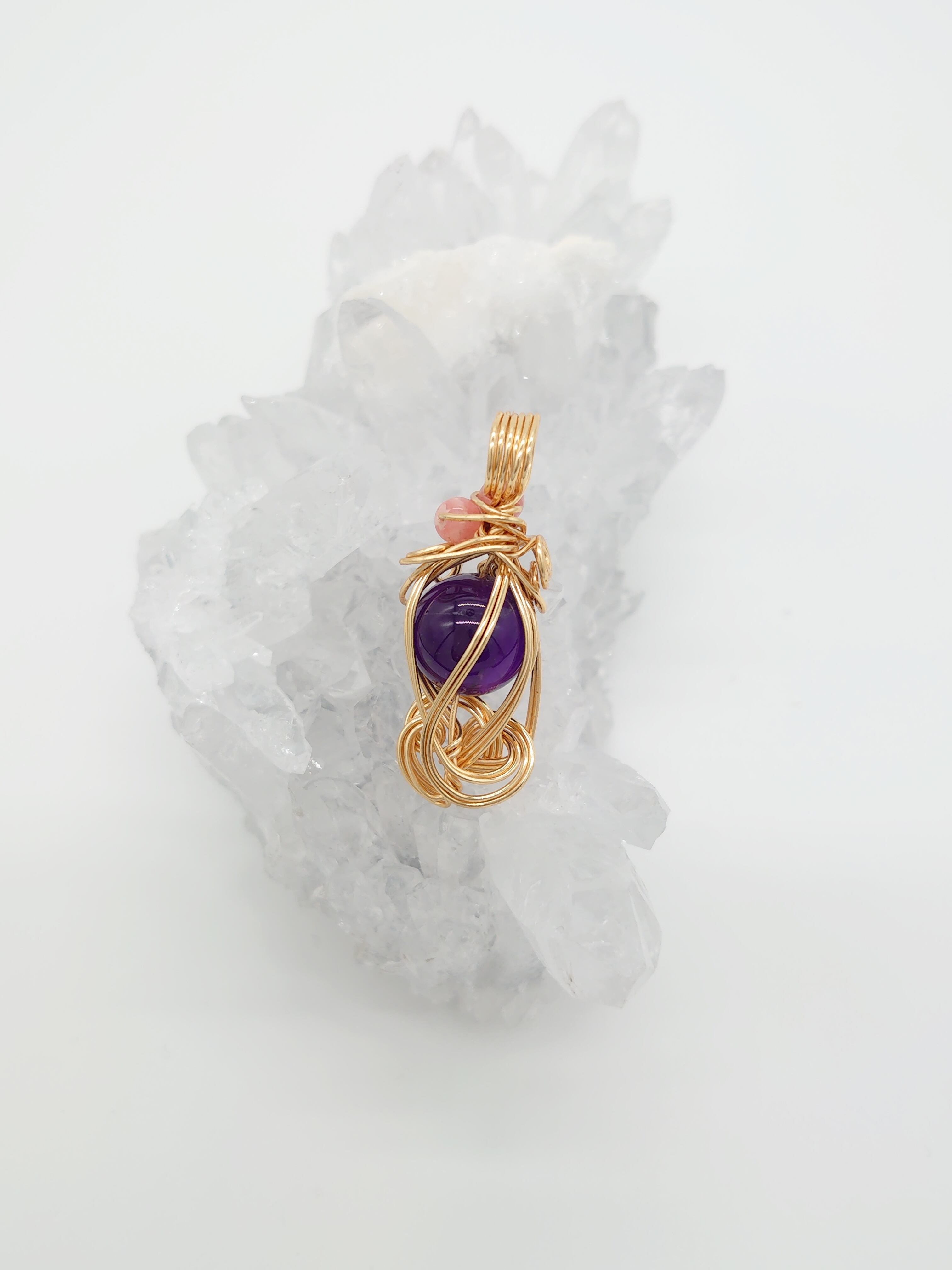 【ワイヤーアートジュエリー☆アメジスト一粒ペンダント・トップ】~真実の愛~